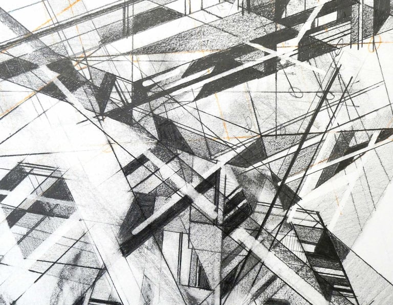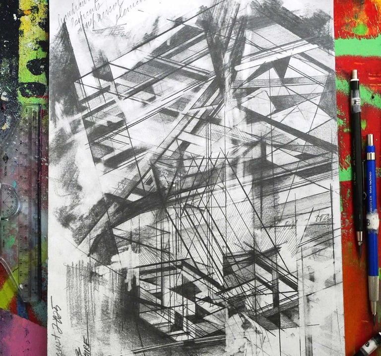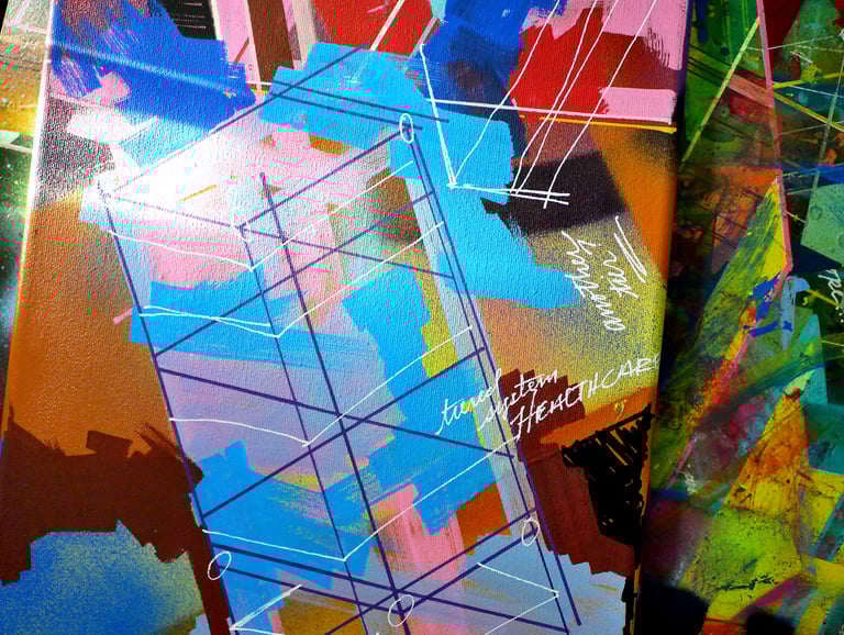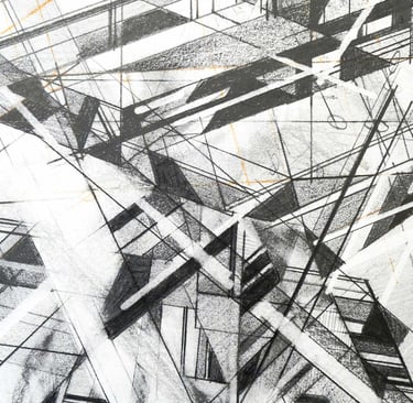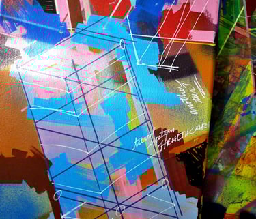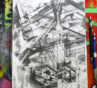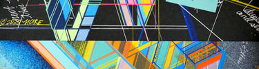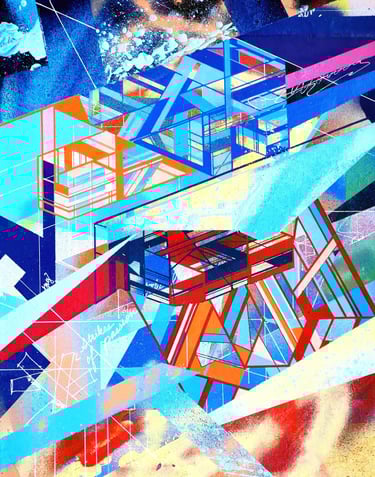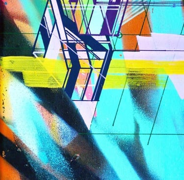 Drawing inspiration from architectural principles and geometric abstraction. I employ pre-composed images and spontaneous painterly strokes in the creation of all my free-association works.