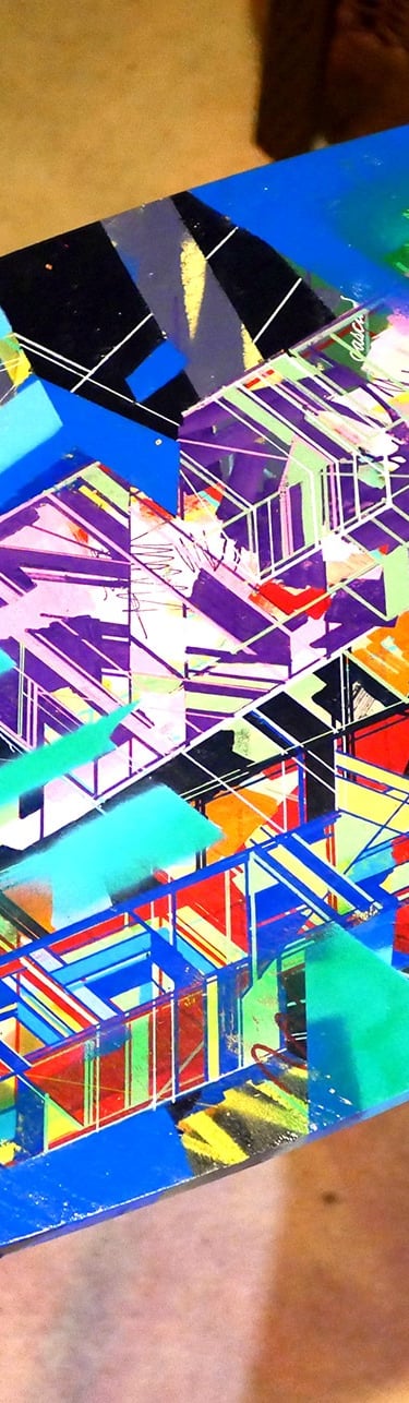 My approach to incorporating spray painting into my artistic development has been to embrace the concept of open change. Everything is receptive to possibilities beyond my preconceived notions of abstract art.