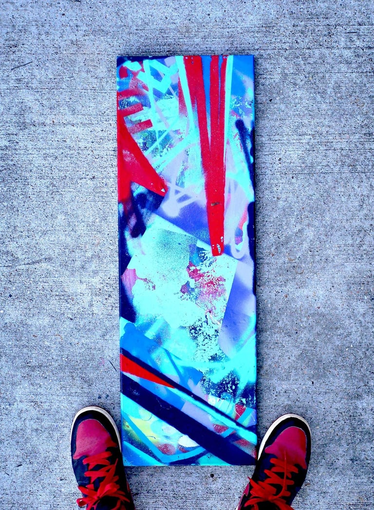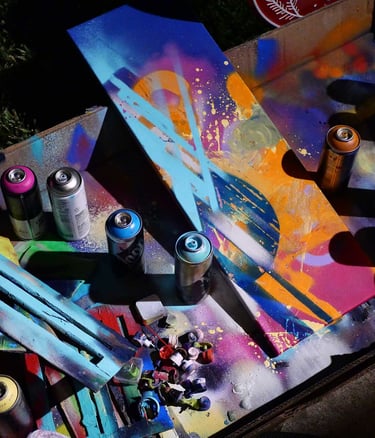 My approach to incorporating spray painting into my artistic development has been to embrace the concept of open change. Everything is receptive to possibilities beyond my preconceived notions of abstract art.
