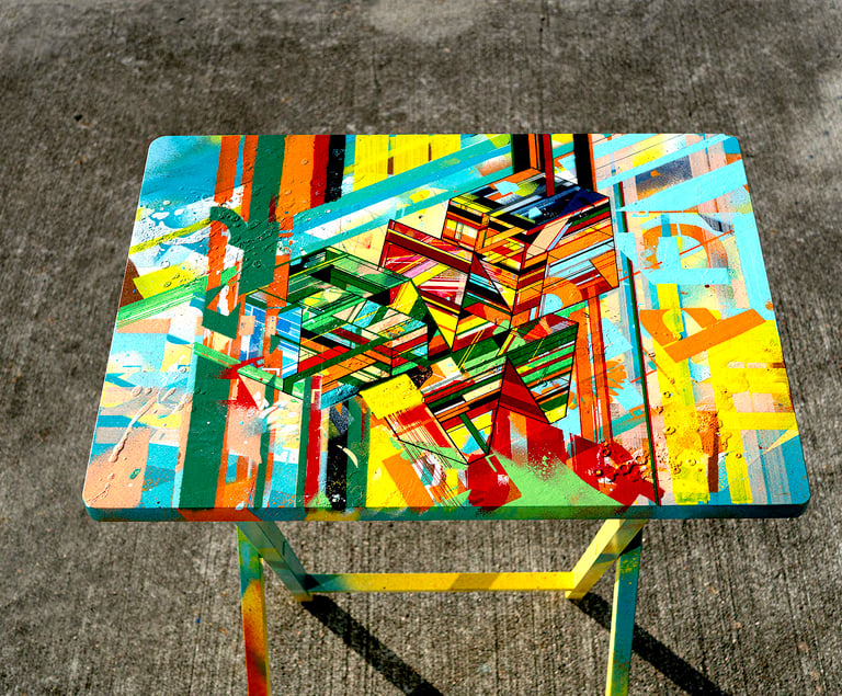 Looking at my artistic journey, it’s like I’m constantly balancing two sides: the structured world of geometric design and the vibrant, free-flowing realm of aerosol painting. This ongoing exploration is shown through the way I spray and shape paint with different tools. Lately, I’ve been experimenting with mixing these two styles, but it’s not quite the same as before.